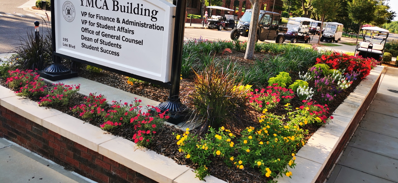 Flower beds at Old Main Academic Center, Mississippi State University